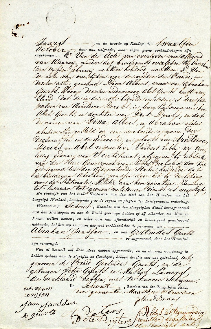 BHIC, huw. reg. Maashees en Overloon 1823, akte 1