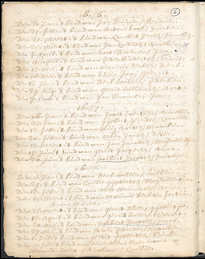 1231.6 Zijderveld, NH Dopen, 1672-1812, Toegangscode 1231, Inv.nr. 6, Pagina 1-205 Doopdatum: 19-06-1687 Akteplaats: Zijderveld Dopeling: Anna Jaspersen Vader: Gerrit Jaspersen Gezindte: Nederlands-hervormd Toegangsnummer: 1231 doop-, huwelijks- en begraafregisters Everdingen, Hagestein en Vianen 1598-1812 Inventarisnummer: 6 Paginanummer: 6 |