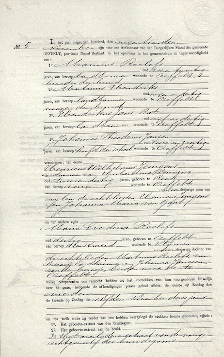 Oeffelt huw. 19-11-1900 Henricus Wilhelmus Jeurgens en Maria Everdina Roelofs