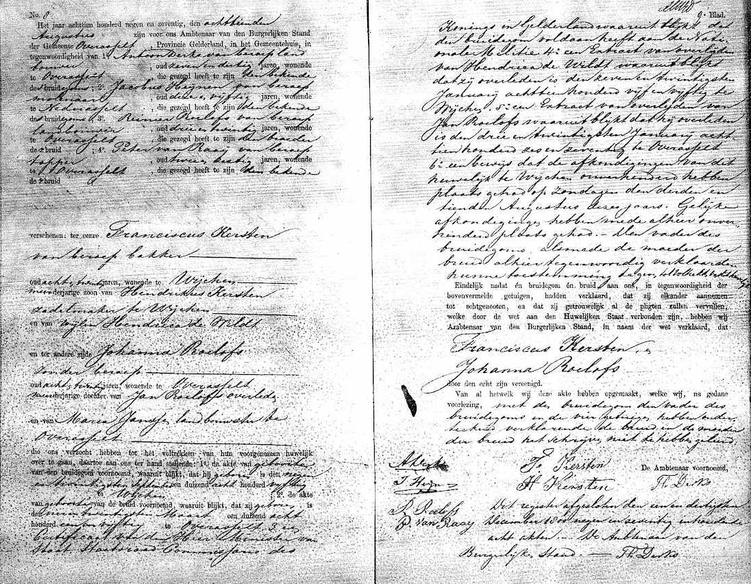 Overasselt Huw. 18-08-1879 Johanna Roelofs en Franciscus Kersten, 18-08-1879