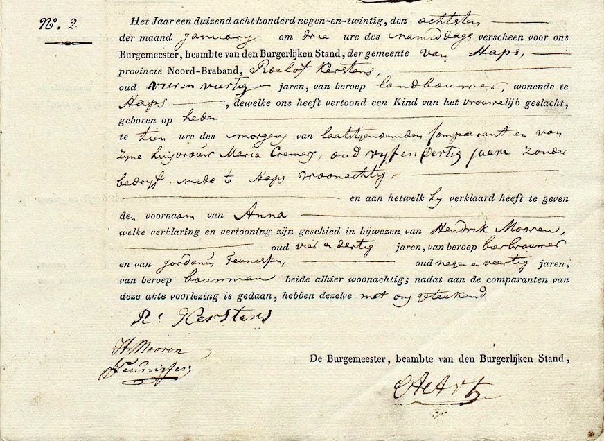 BHIC, geb. reg. Haps 1829, akte 2