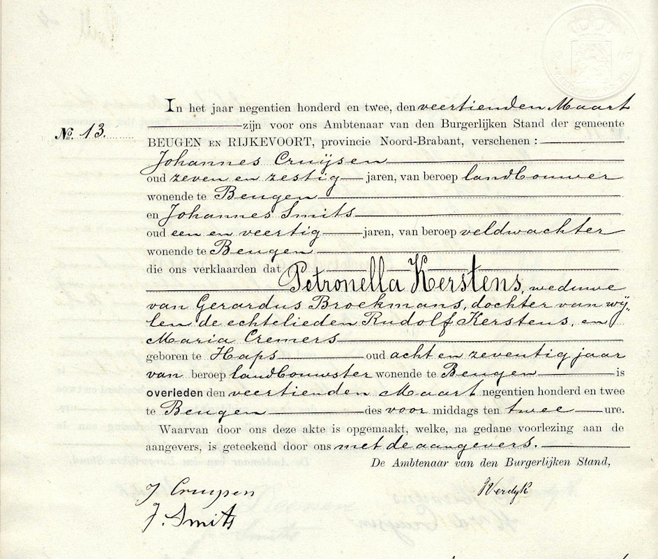 BHIC, ovl. reg. Beugen en Rijkevoort 1902, akte 13
