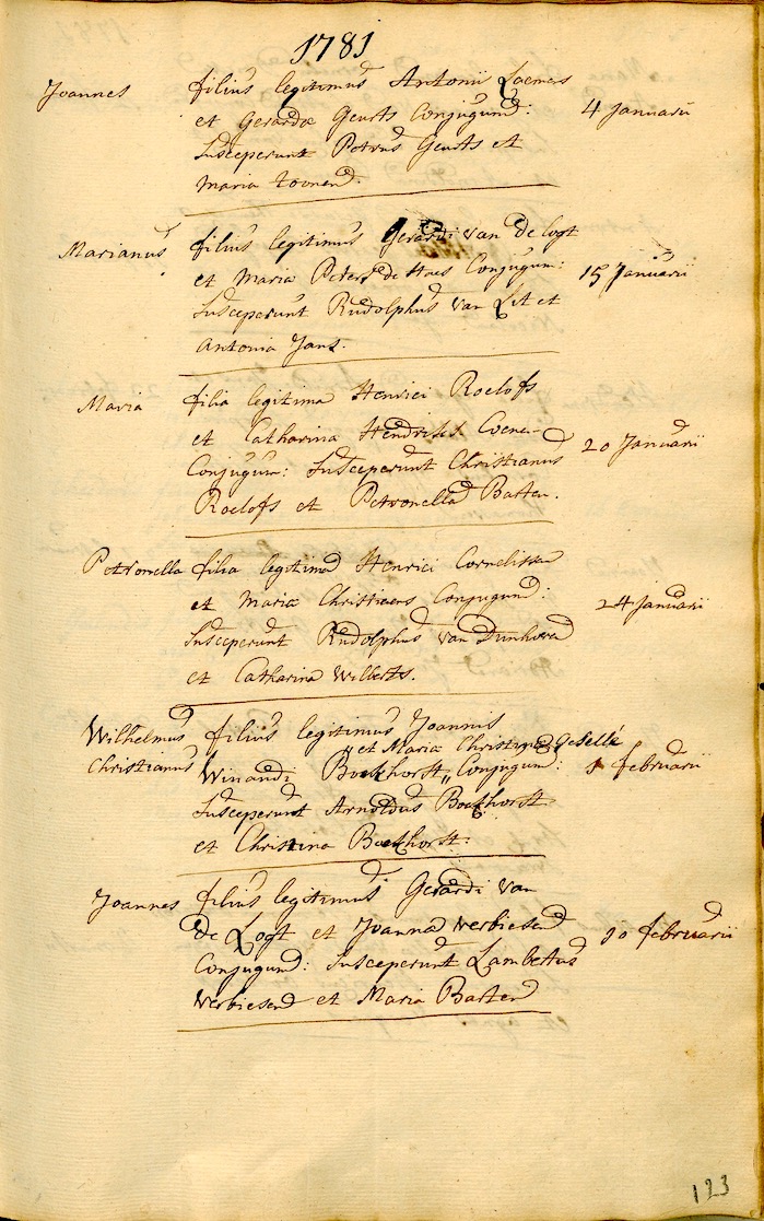 BHIC, DTB Cuijk doopb. 1762-1796, inv. nr. 16 folio/pag. 123