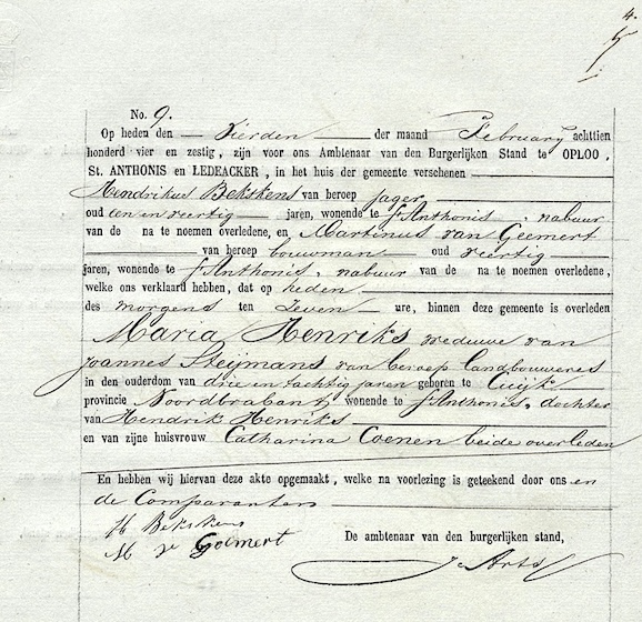 BHIC, ovl. reg. Oploo, Sint Anthonis en Ledeacker 1864, akte 9