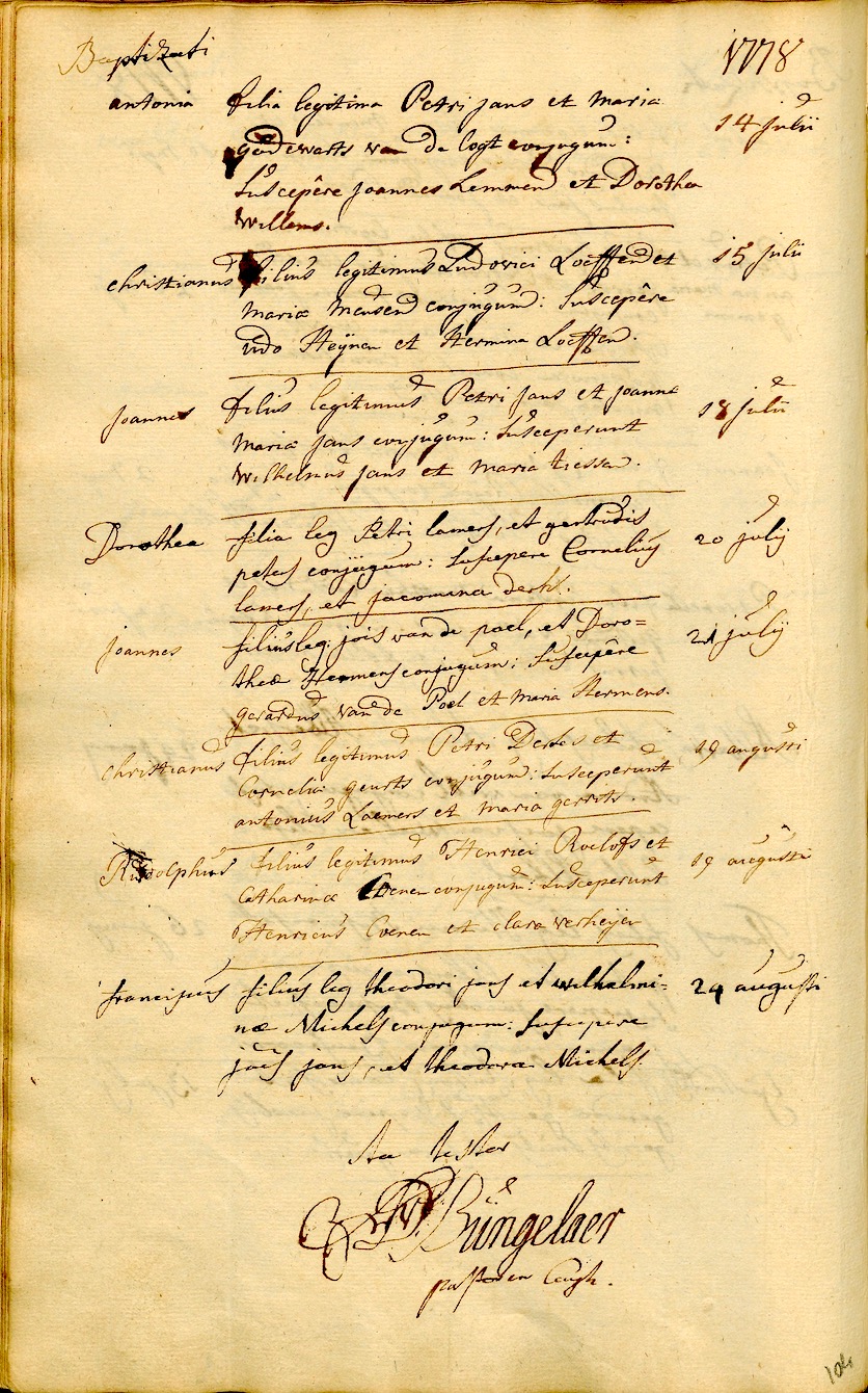 BHIC, DTB Cuijk doopb. 1762-1796, inv. nr. 16 folio/pag. 104