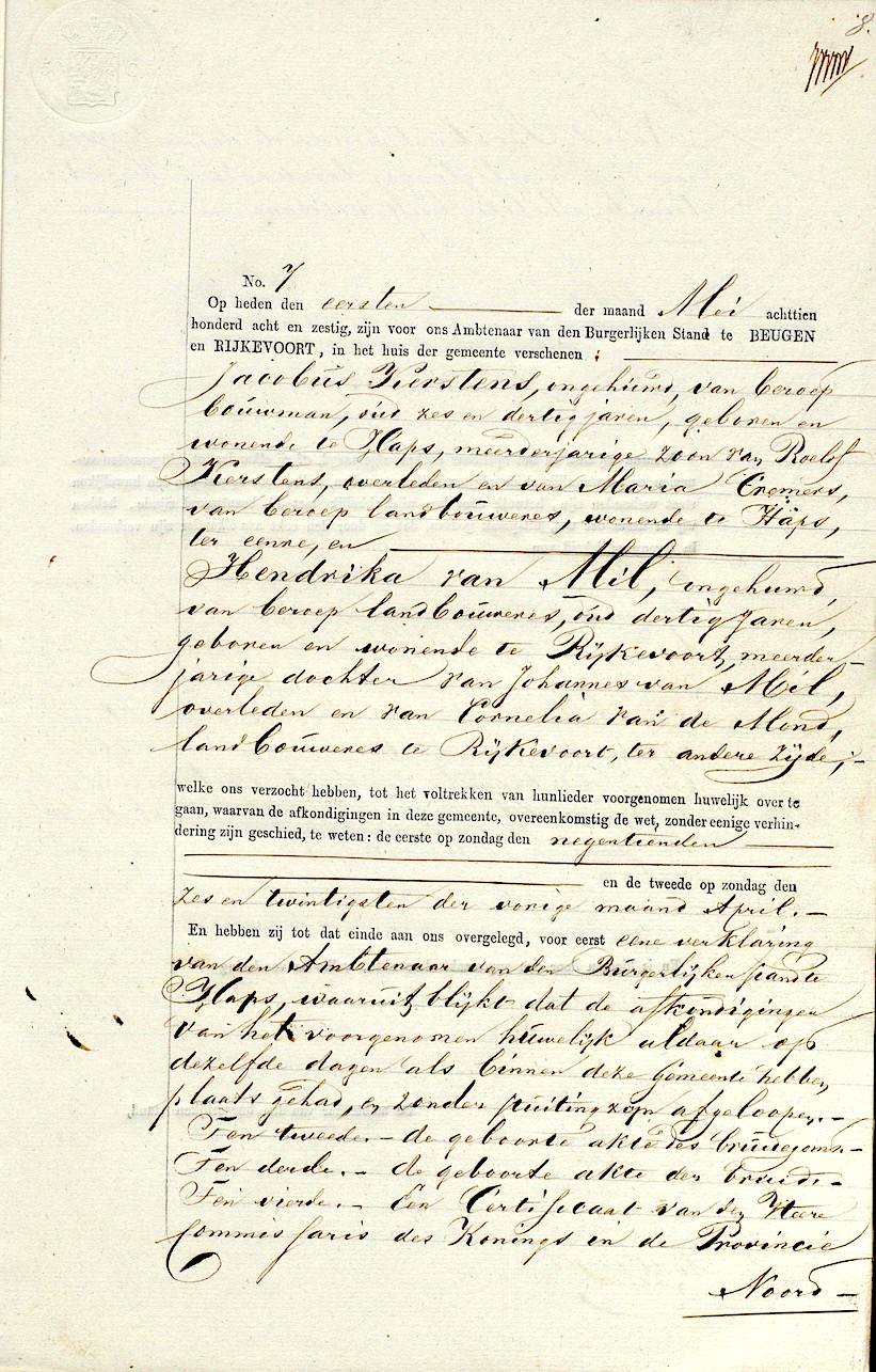 BHIC, huw. reg. Beugen en Rijkevoort 1868, akte 7