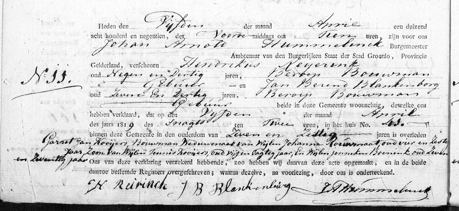 Groenlo ovl. 05-04-1819 akte 11 Garrit Jan Kooijers