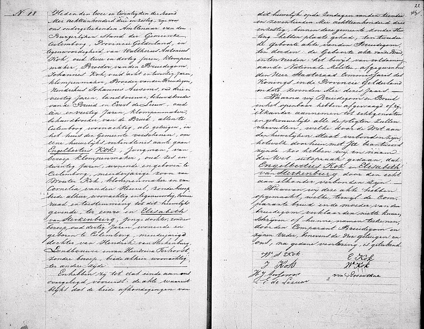 Culemborg huw. 22-05-1863 Engelbertus Kok en Elisabeth van Sterkenburg