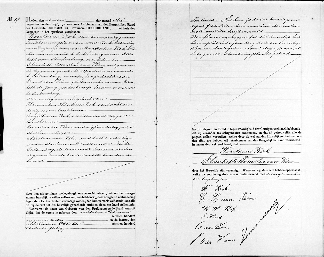 GldA, huw. reg. Culemborg 1905, akte 19