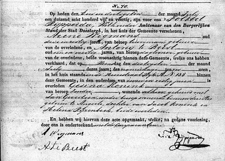 GeldA, overl. reg. Doesburg 1845, akte 70