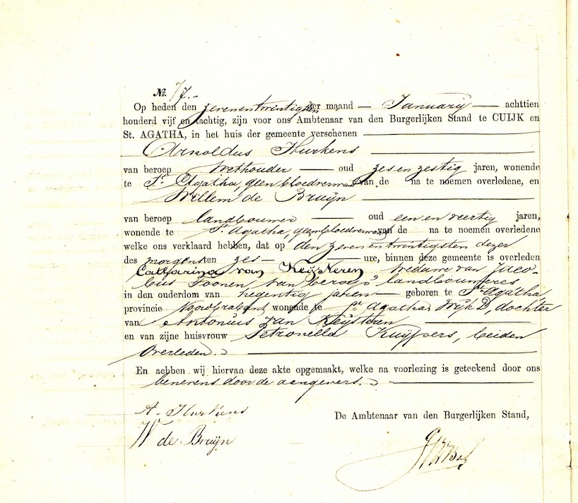 BHIC, overl. reg. Cuijk en Sint Agatha 1885, akte 7