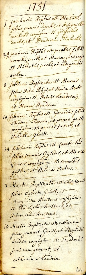 BHIC, DTB Haps RK doopboek 1723-1792 folio/pag. 64
