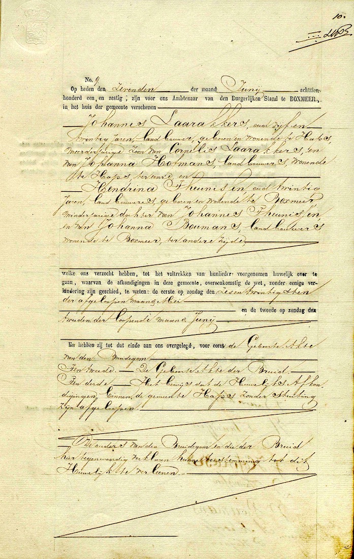 WWW, huw. reg. Boxmeer 1861, akte 9
