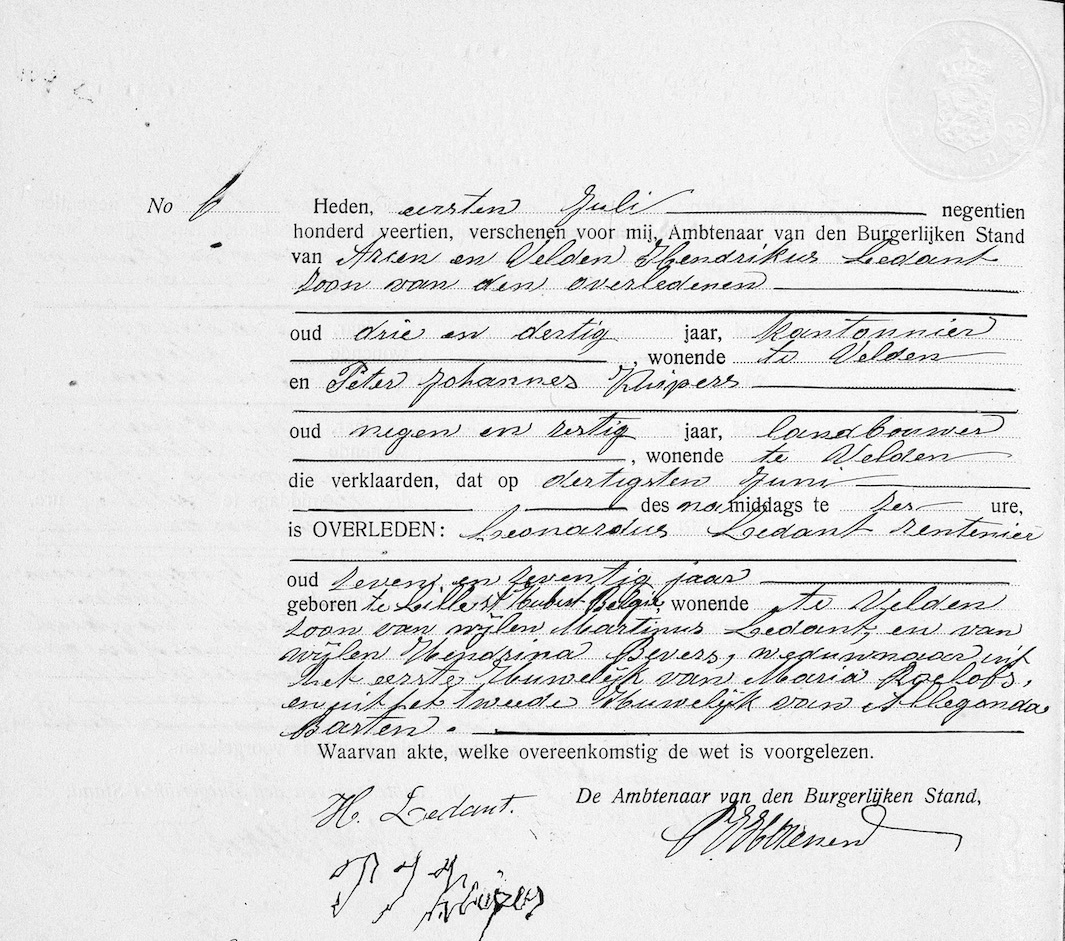RHCL, ovl. reg. Arcen en Velden 1914, akte 6