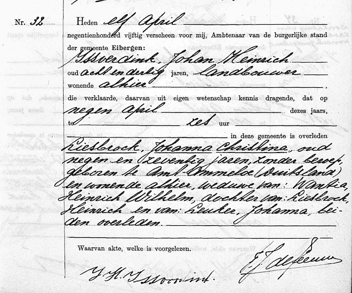 GeldA, overl. reg. Eibergen 1950, akte 32