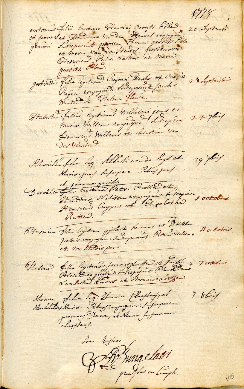 BHIC, DTB Cuijk doopb. 1762-1796 pag. 184 inv. nr. 16 folio/pag. 105