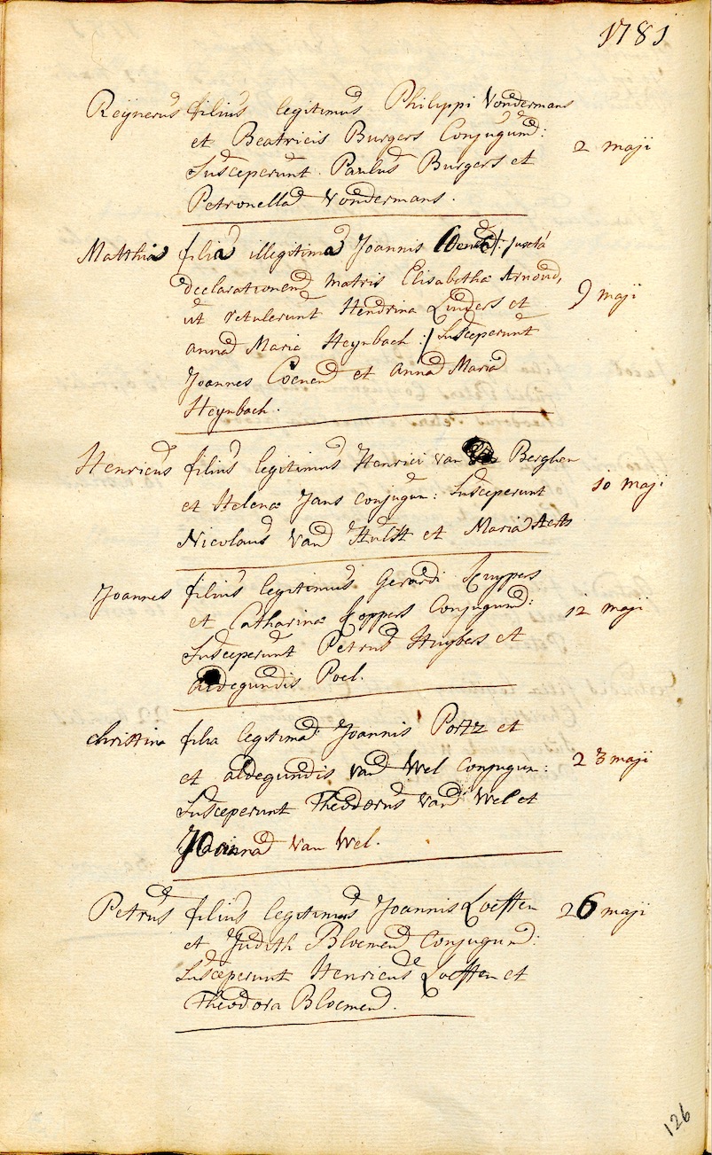BHIC, DTB Cuijk doopb. 1762-1796 pag. 184 inv. nr. 16 folio/pag. 126
