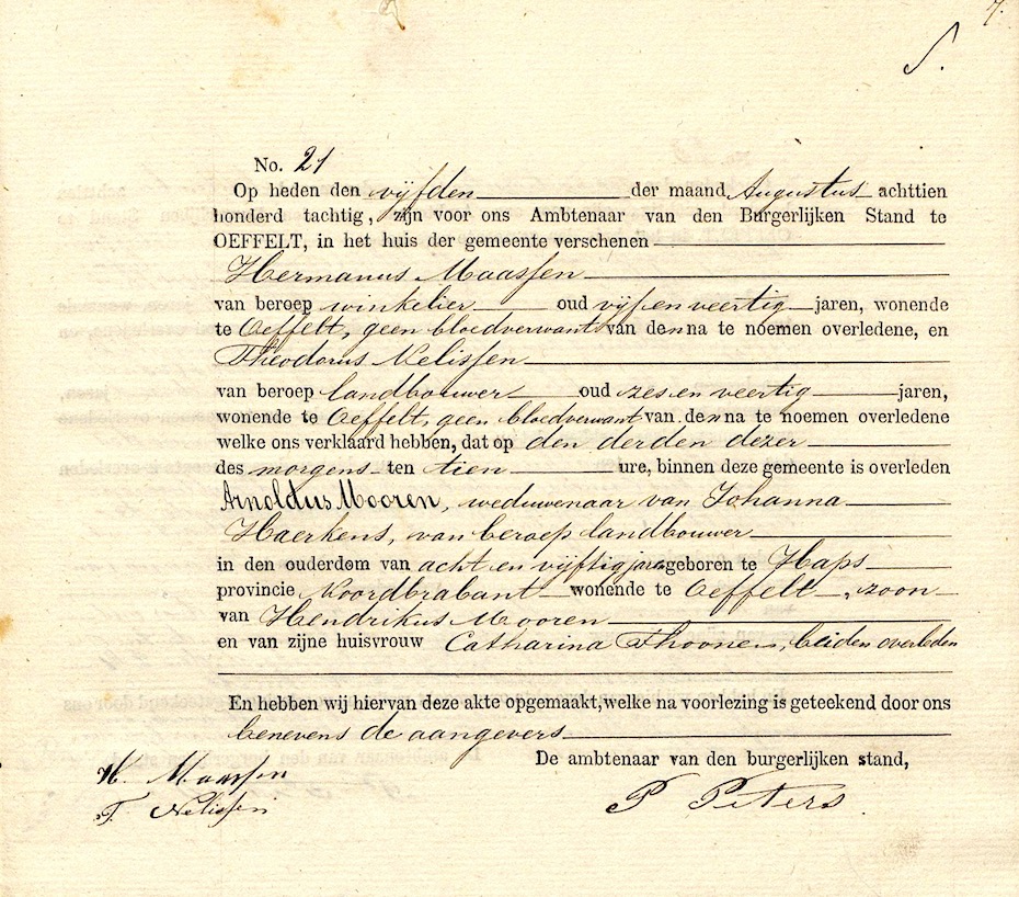 BHIC, ovl. reg. Oeffelt 1880, akte 21