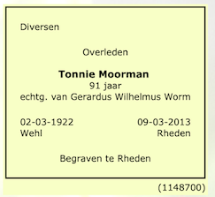 Antonia Josephina Moorman overlijden