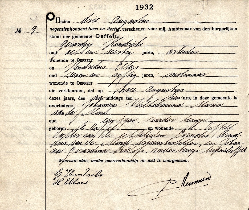 Oeffelt overl. 02-08-1932 v.d. Mond Johanna Wilhelmina Maria