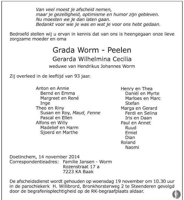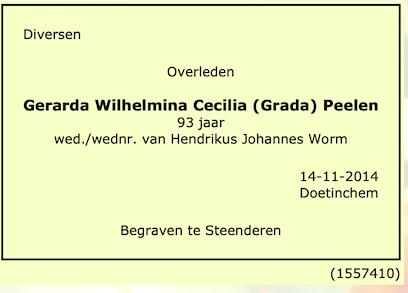 Gerarda Wilhelmina Cecilia Peelen overlijden