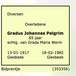 Gerardus Johannes Pelgrim overlijden