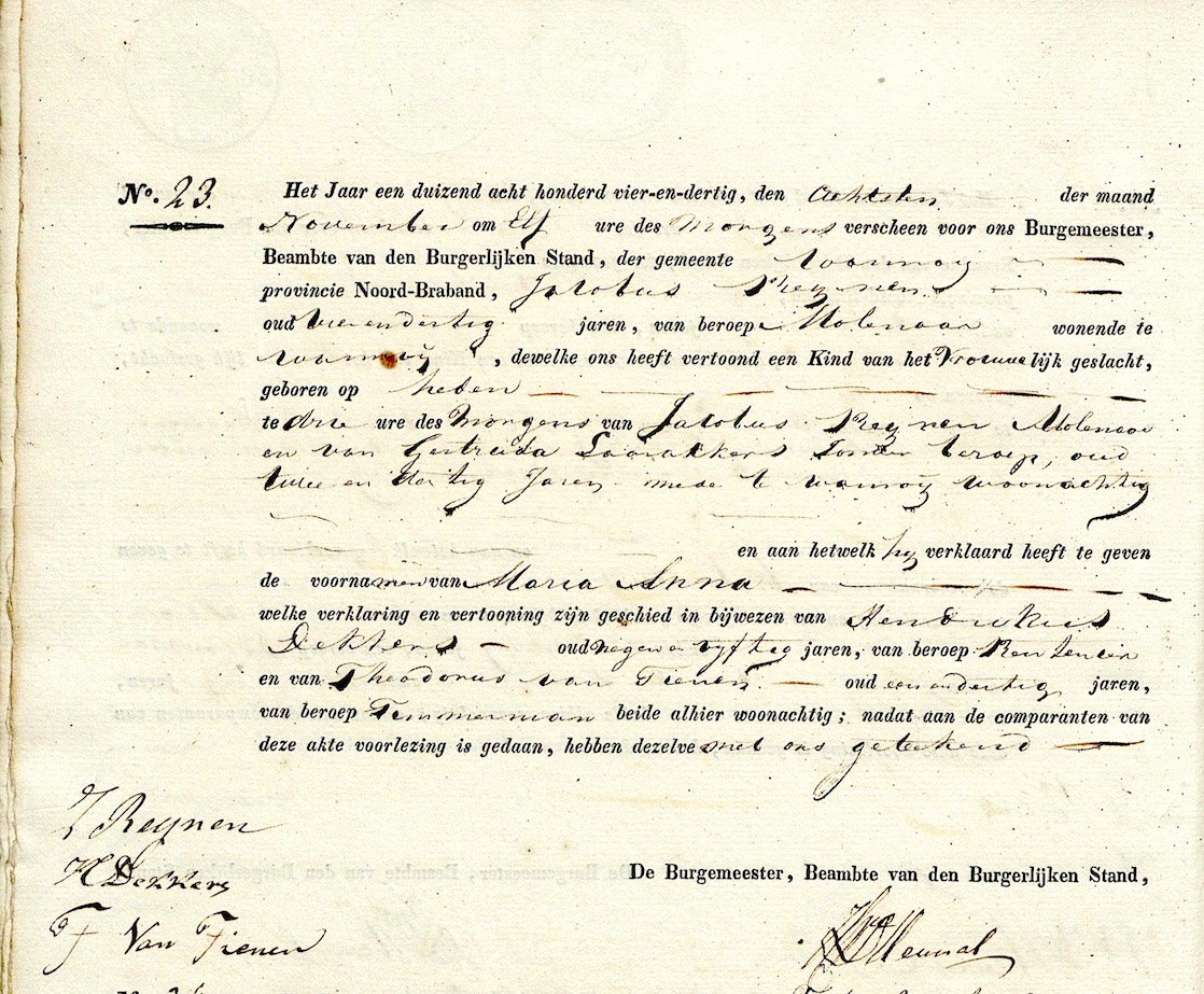 BHIC, geb. reg. Wanroij 1834, akte 23