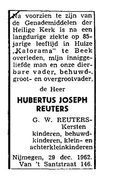 Hubertus Josephus Reuters overlijden