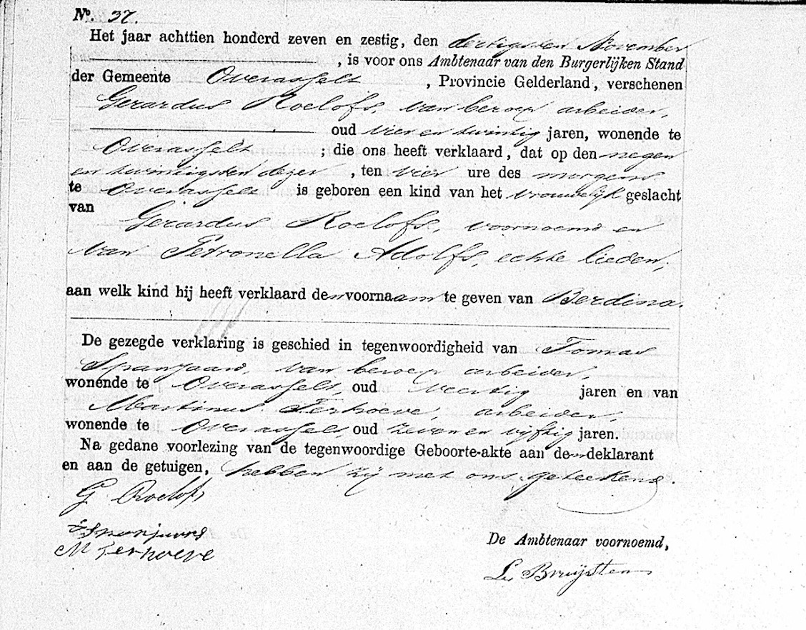 HAN, geb.reg. Overasselt 1867, akte 37