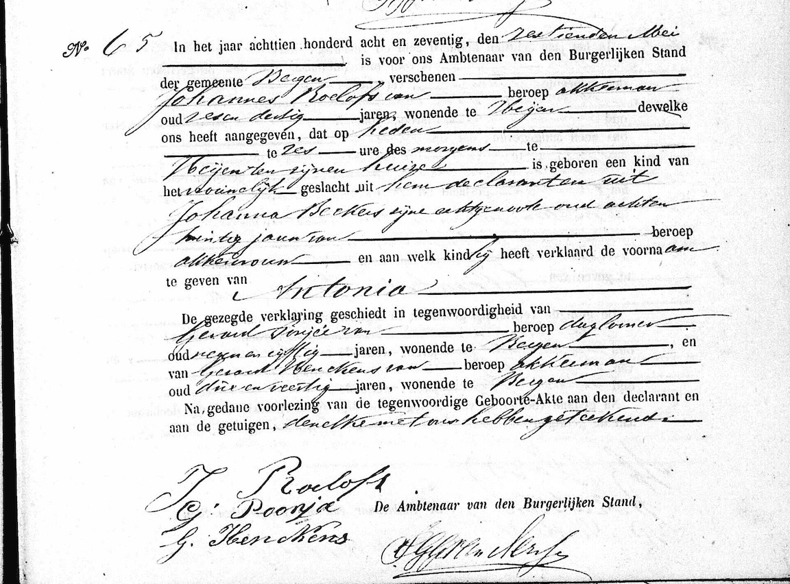 RHCL, geb. reg. Bergen (L) 1878, akte 65