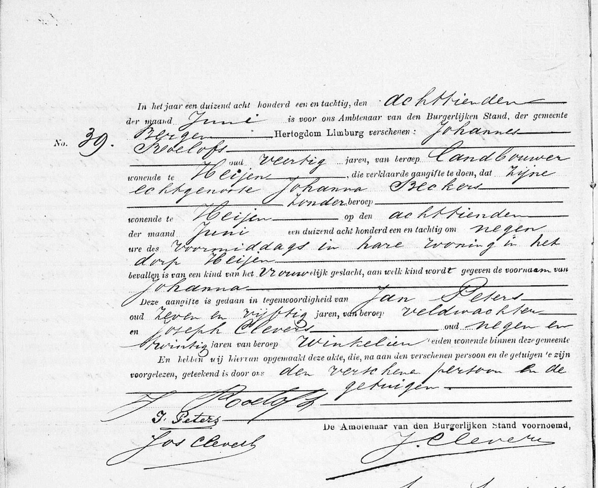 RHCL, geb. reg. Bergen (L) 1881, akte 39