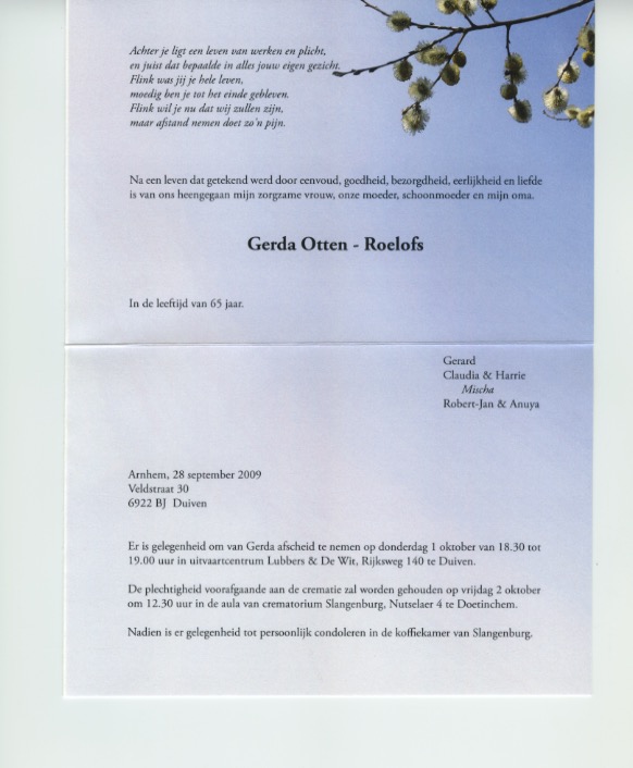 Geertruida Hermina Maria Roelofs overlijden