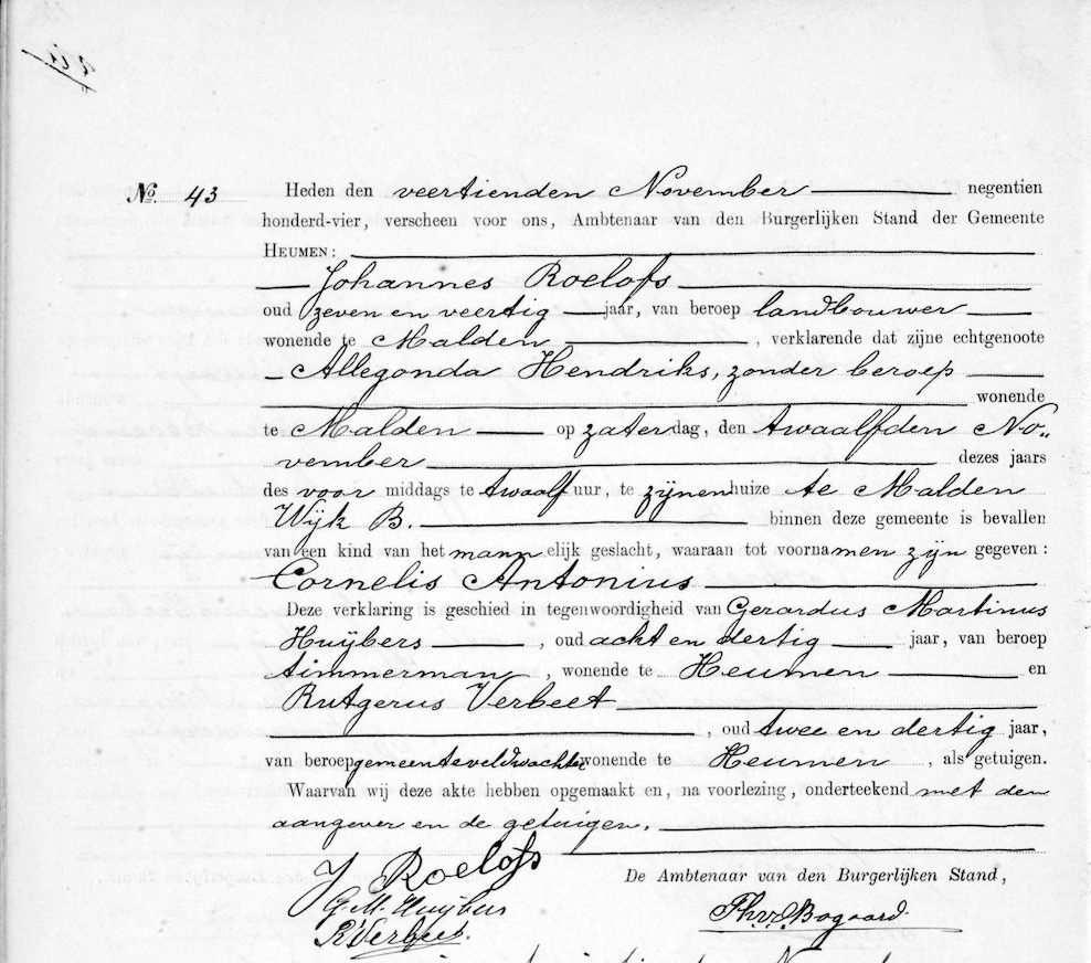 GeLdA, geb. reg. Heumen 1904, akte 43