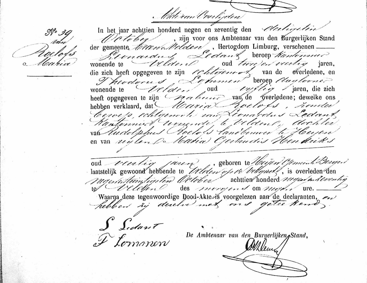 RHCL, ovl. reg. Arcen en Velden 1879, akte 39