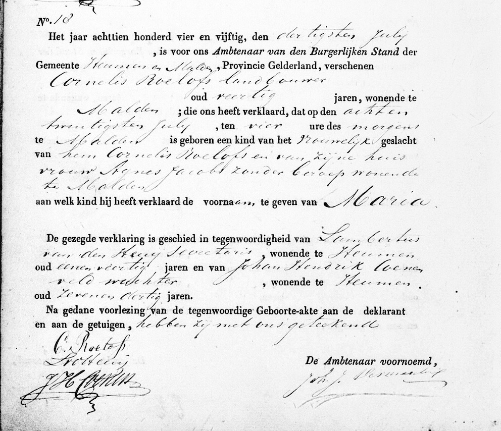HAN, geb.reg. Heumen 1854, akte 18