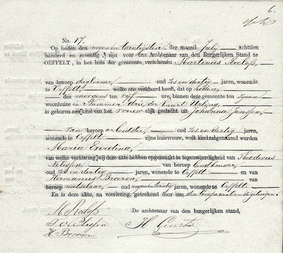BHIC, geb.reg. Oeffelt 1870, akte 17