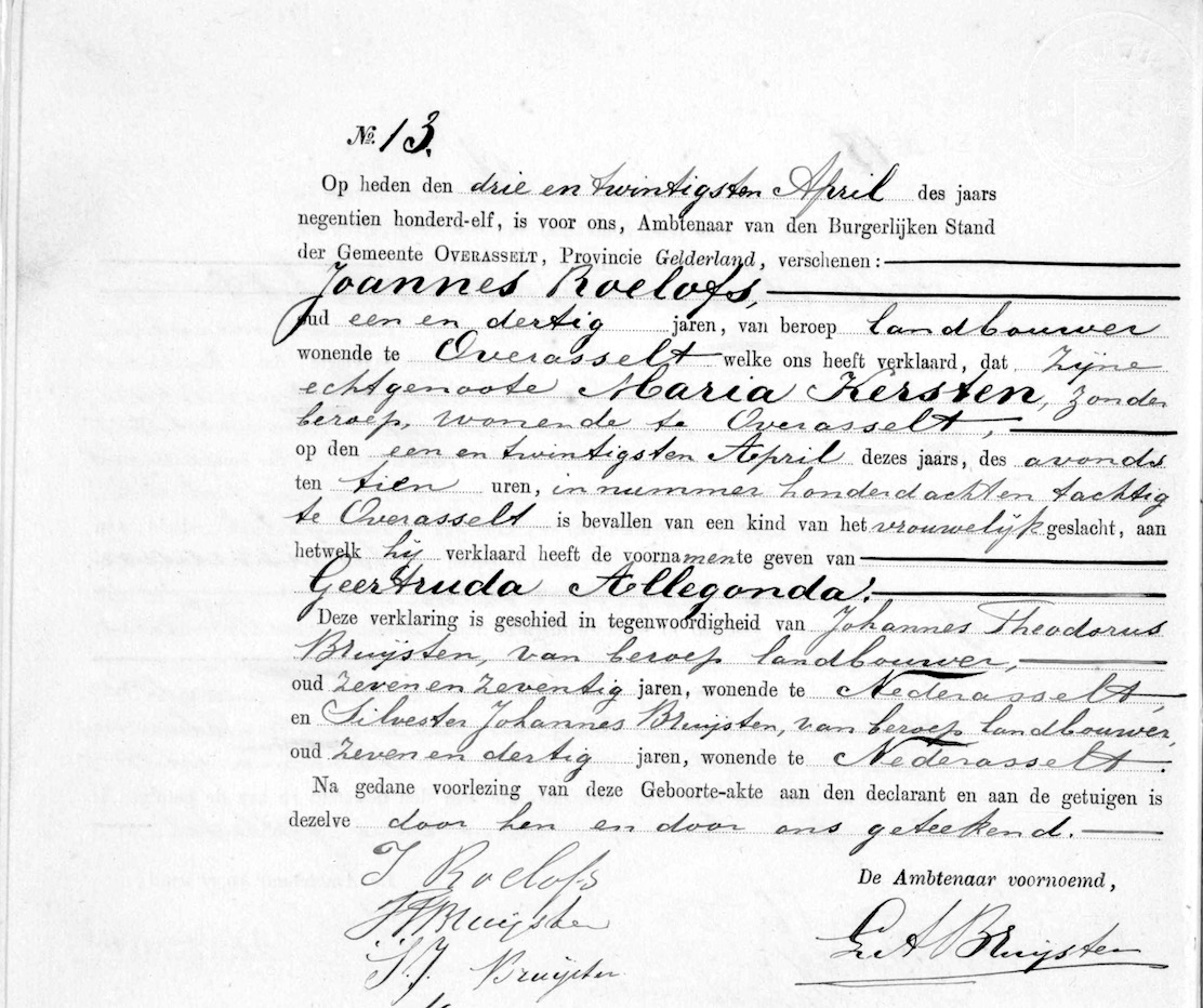 GeldA, geb. reg. Overasselt 1911, akte 13