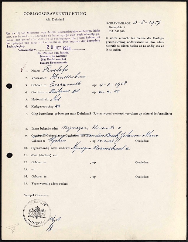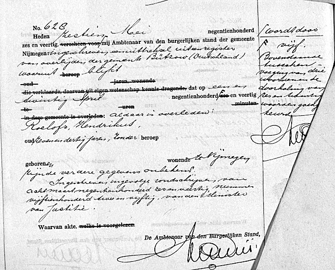 Hendrikus Roelofs overlijden
