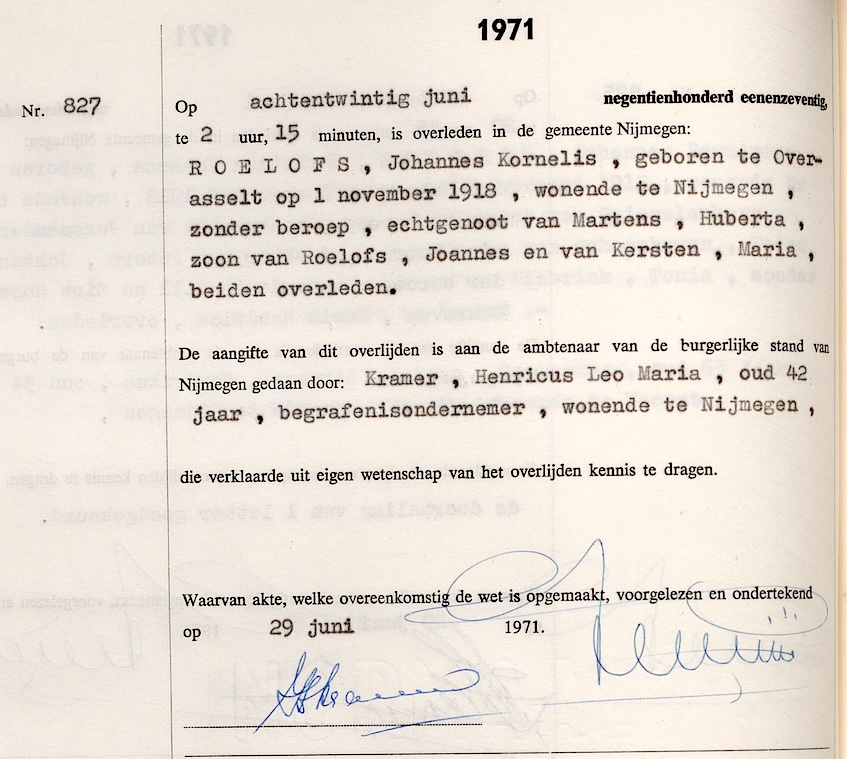 GeldA, overl. reg. Nijmegen 1971, akte 827