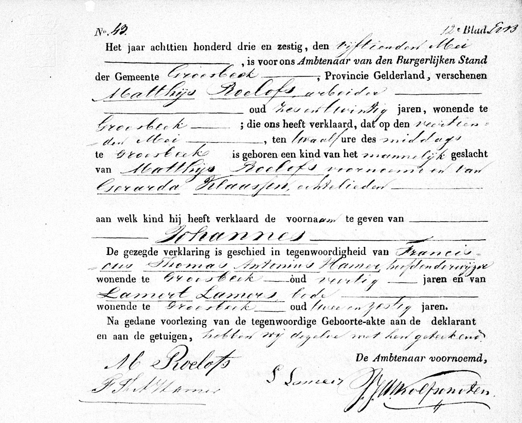 HAN, geb.reg. Groesbeek 1863, akte 43