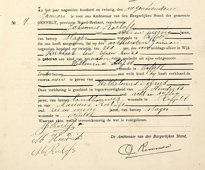 BHIC, geb. reg. Oeffelt 1920, akte 4