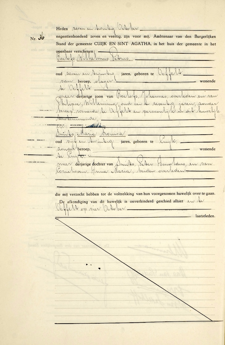 BHIC, huw. reg. Cuijk en Sint Agatha 1947, akte 36