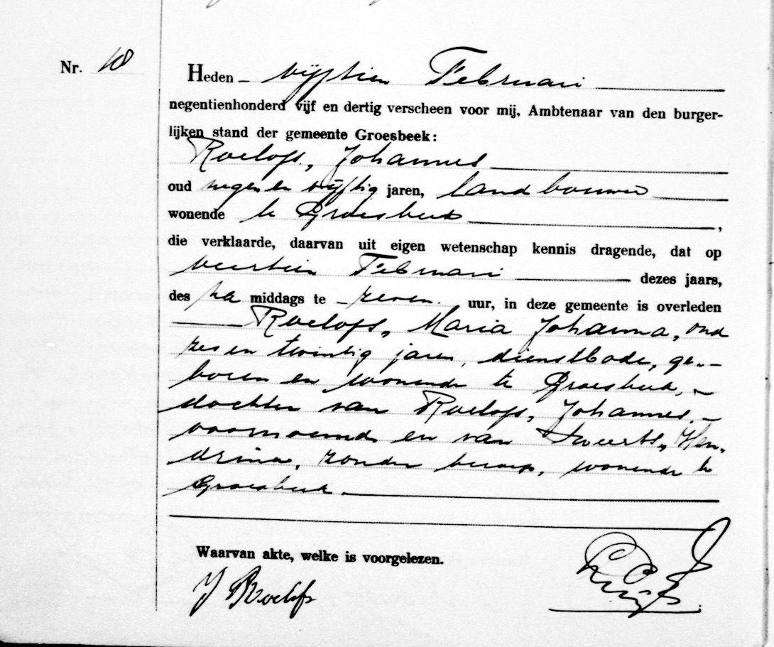 Maria Johanna Roelofs overlijden