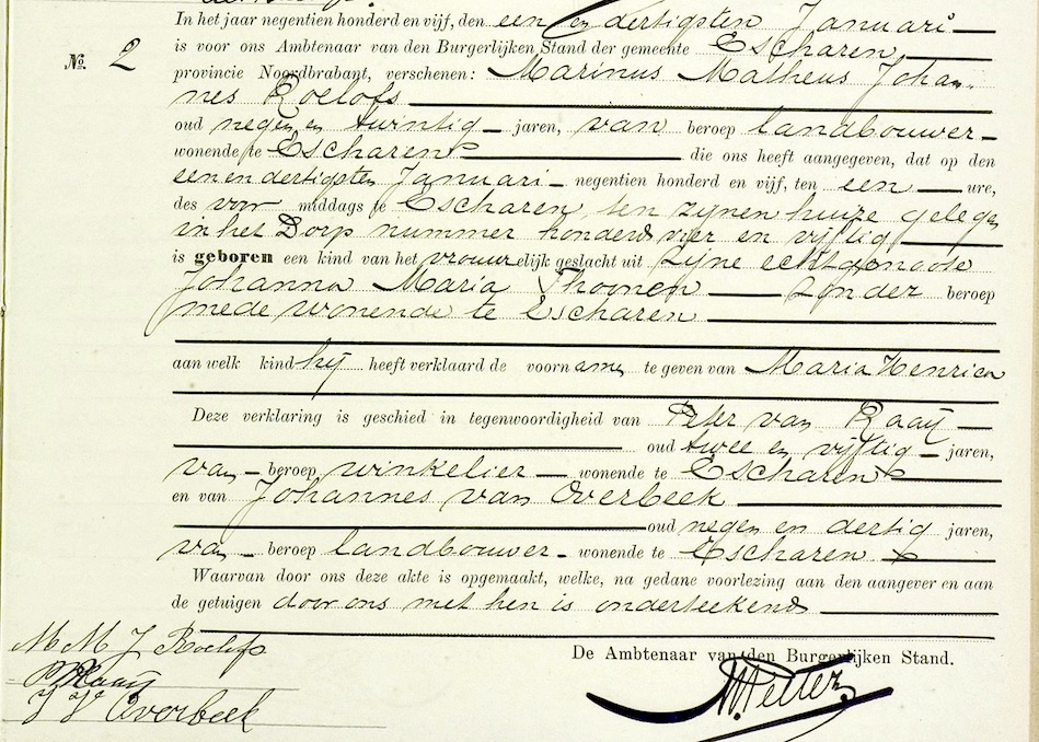 BHIC, geb. reg. Escharen 1905, akte 2