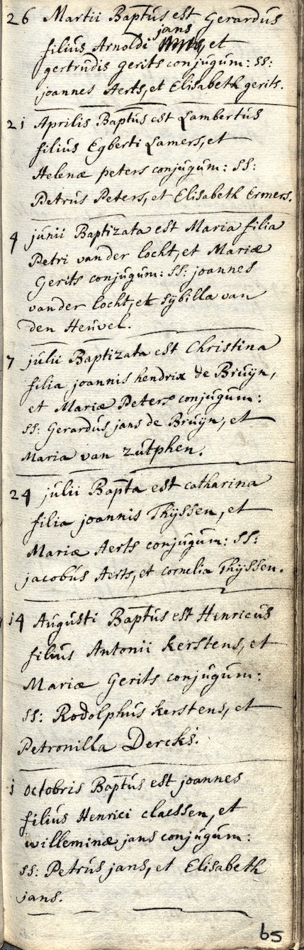 Fam. search, DTB Haps RK doopb. 1723-1813 pag. 65 inv. nr. 3