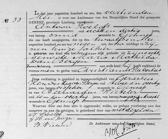 RHCL, geb. reg. Gennep 1906, akte 33