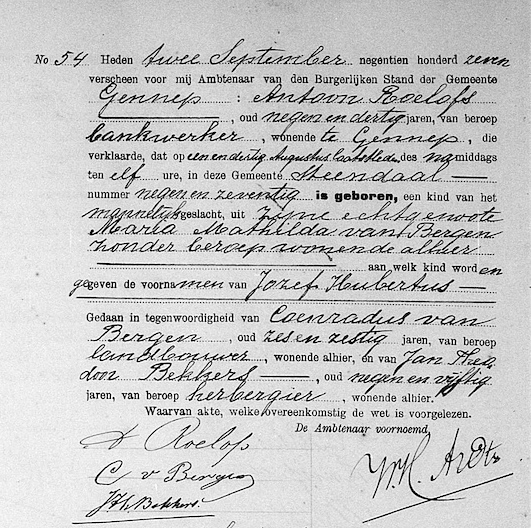 Gennep geb. akte 31-08-1907 Roelofs Jozef Hubertus