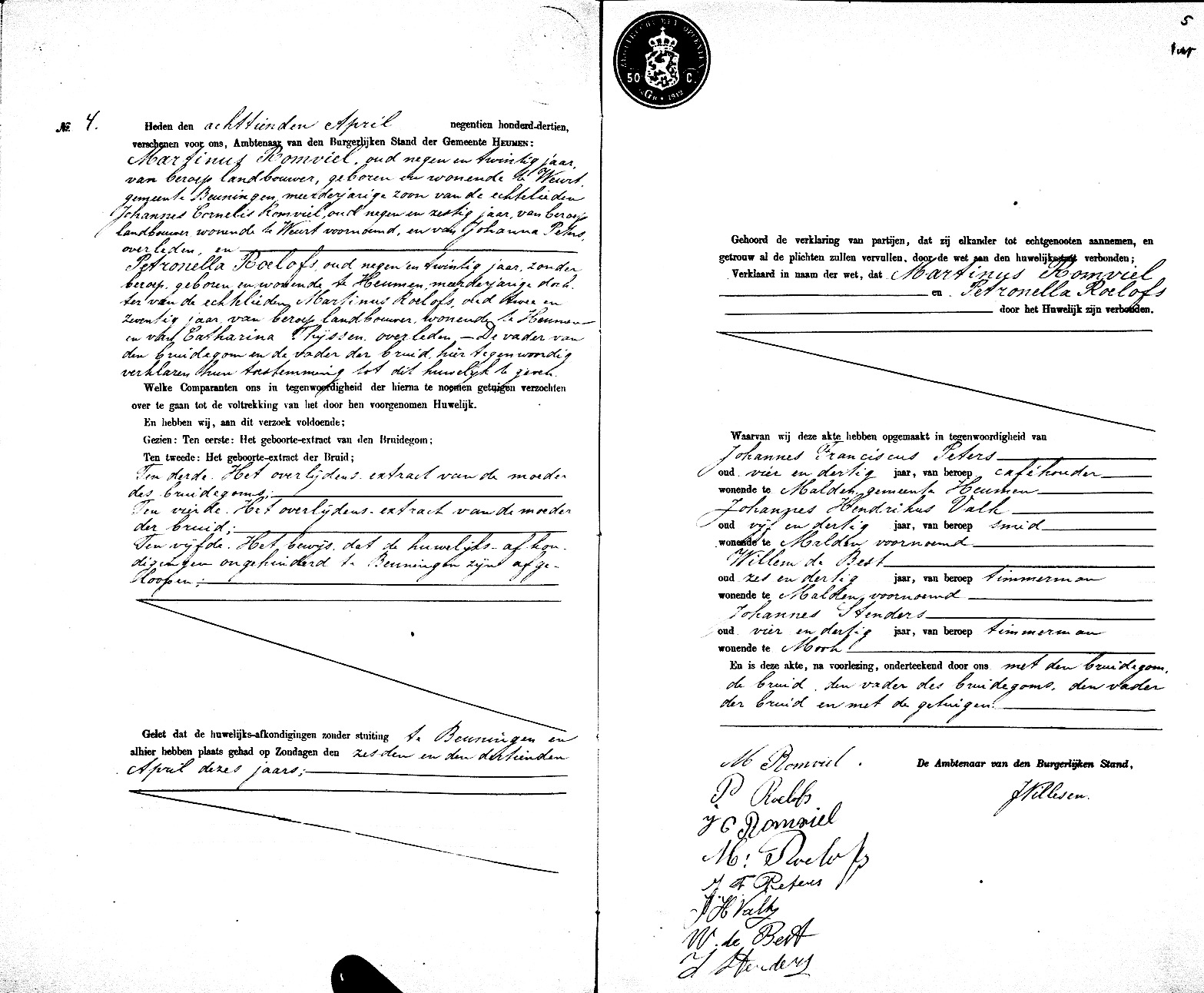 HAN, huw.reg. Heumen 1913, akte 4