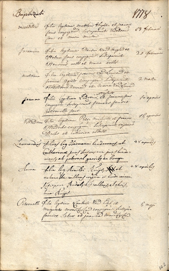 Fam. search, DTB RK doopb. Cuijk 1762-1796, inv. nr. 16 folio/pag. 102