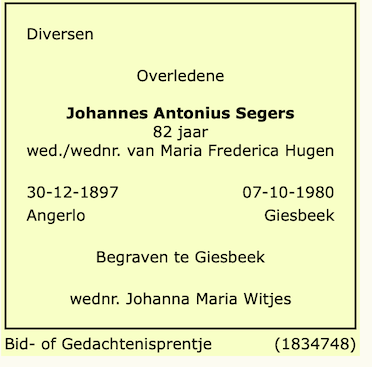 Johannes Antonius Segers overlijden